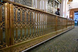دشنت وكالة الرئاسة العامة للمسجد النبوي ضمن إطار المحافظة على الهوية البصرية للمسجد النبوي الحاجز النحاسي المذهب الجديد المحيط بالمقصورة النبوية.