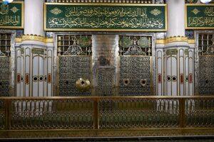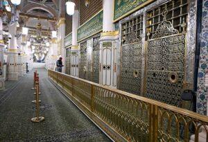 إيسايكو: تدشين الحاجز النحاسي المذهب المحيط بالحجرة النبوية وكالة الأنباء السعودية المدينة المنورة 23 رمضان 1444 هـ الموافق 14 أبريل 2023 م واسدشنت وكالة الرئاسة العامة للمسجد النبوي ضمن إطار المحافظة على الهوية البصرية للم