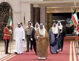 ويرافق سموه وفد رسمي يضم كلا من معالي نائب رئيس مجلس الوزراء ووزير النفط ووزير الدولة للشؤون الاقتصادية والاستثمار الدكتور سعد حمد البراك ومعالي وزير الخارجية الشيخ سالم عبدالله الجابر الصباح ومعالي وزير التجارة والصناعة ووزير الدولة لشؤون الشباب محمد عثمان العيبان ومعالي وزير الكهرباء والماء والطاقة المتجددة الدكتور جاسم محمد الاستاد ومعالي وزير العدل ووزير الدولة لشؤون الإسكان فالح عبدالله الرقبة وكبار المسؤولين بالدولة.