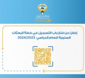 الكويت – 10 – 6 (كونا) — أعلنت وزارة التعليم العالي عن فتح باب التسجيل في خطة البعثات للعام الدراسي (2024/2023) وذلك عبر الموقع الالكتروني للوزارة اعتبارا من اليوم السبت وحتى الثاني من يوليو المقبل.
