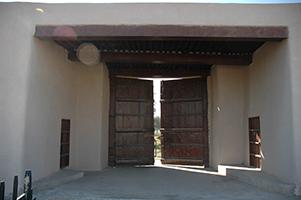 تبلغ مساحتها حوالي 177م2 وهي مؤلفة من مدخلين رئيسيين عرض كل منهما 5.30 م تقريبا و ثلاث غرف حراسة بمساحة 42 م2 تقريبا وقد تم الحفاظ على وضعها الأصلي وأعيد ترميمها من قبل المجلس الوطني للثقافة والفنون والآداب.