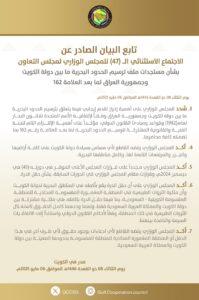 الاجتماع الاستثنائي ال47 للمجلس الوزاري الخليجي يدعم موقف الكويت في ملف ترسيم الحدود مع العراق
