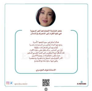 إيسايكو: خطر التنشئة الاجتماعية غير السوية في دفع الأفراد إلى الانحراف والادمان … بقلم الأستاذة نوف الدوسري
