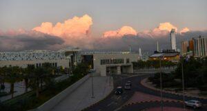 إيسايكو:معالم الكويت في صور استثنائية السحب تغطي سماء الكويت وتحولها إلى لوحة استثنائية نابضة بالرهبة والجمال وتمنحها هدوءًا بصريًّا لافتًا - بدت كثيفة ومتماسكة وقريبة جدًا كأنها تلامس المباني وتعكس جمال فصل الشتاء